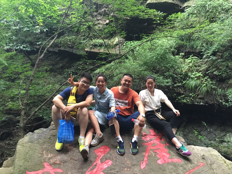 二天來(lái)到了二郎山,今天太陽(yáng)比較大,大家防曬裝備挺齊,來(lái)張合影,拉開(kāi)旅途序幕。