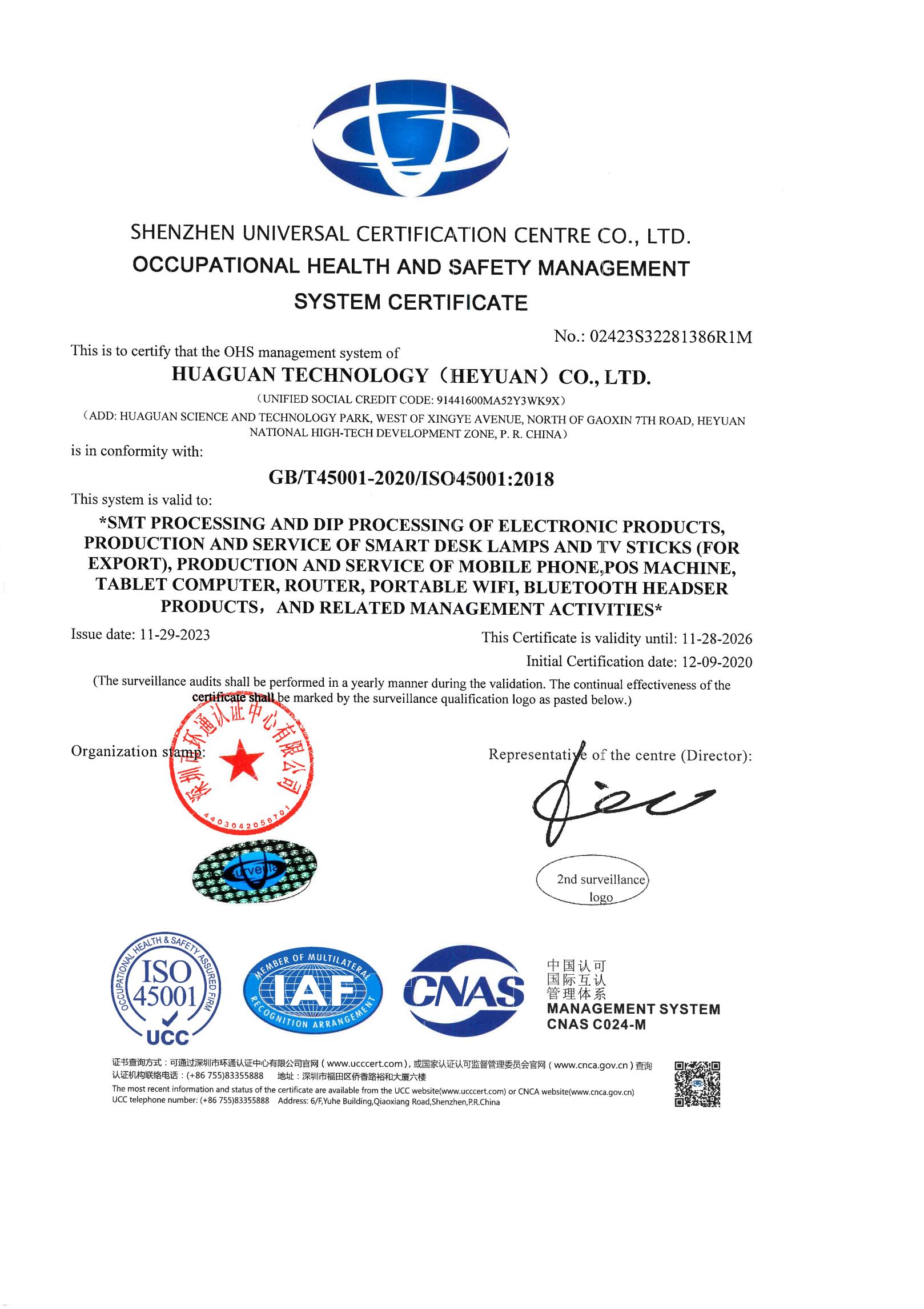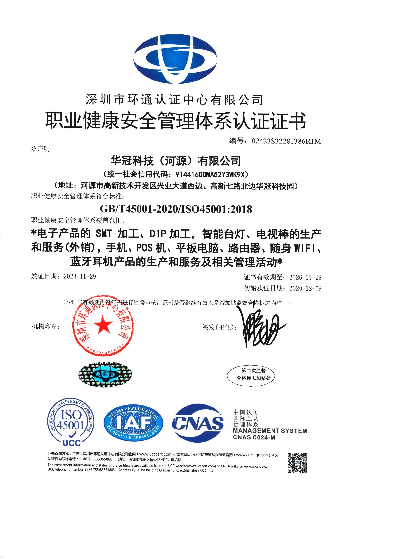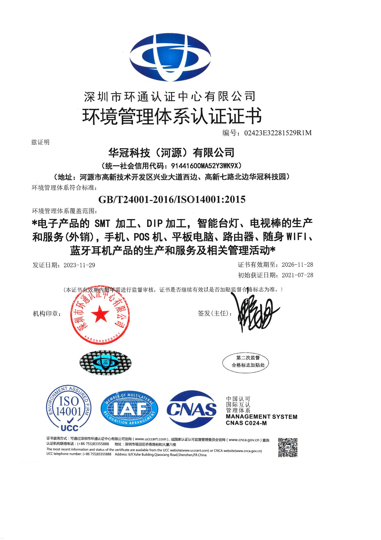 華冠ISO14001環(huán)境管理體系證書(英文)